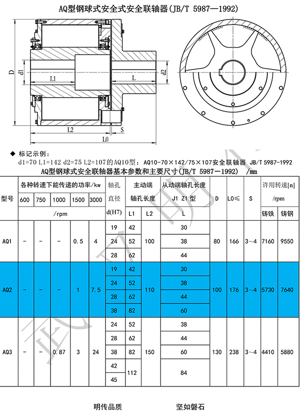 3、可調(diào)節(jié)的安全保護(hù)作用。通過(guò)增減鋼球的數(shù)量,可調(diào)節(jié)達(dá)到過(guò)載保護(hù)轉(zhuǎn)矩。當(dāng)工作機(jī)過(guò)載或卡死時(shí),聯(lián)軸器將自動(dòng)打滑而不損壞任何機(jī)件。