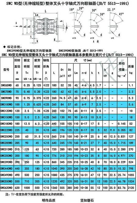 SWC型整體叉頭十字軸式萬向聯(lián)軸器分為BH、BF、WD、CH、WH、WF和WD七種型式。