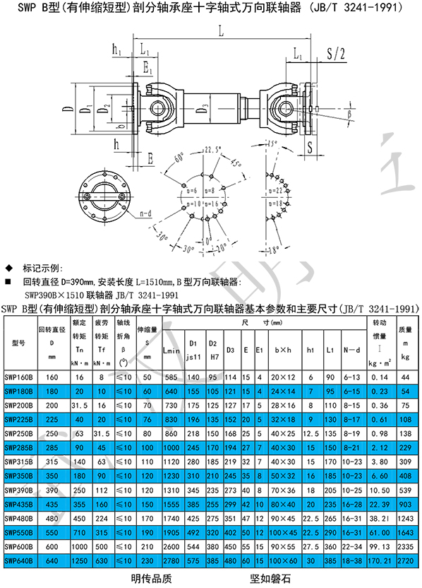 SWC型(整體叉頭)、SWP(剖分軸承座)萬(wàn)向聯(lián)軸器的主要特點(diǎn):