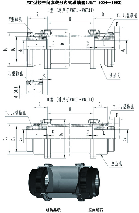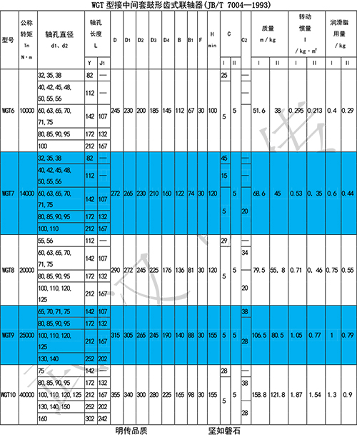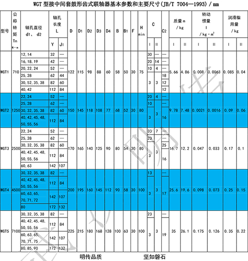 WGT型接中間套鼓形齒式聯(lián)軸器,適用于長(zhǎng)距離聯(lián)接,公稱轉(zhuǎn)矩800~1400000N·m。